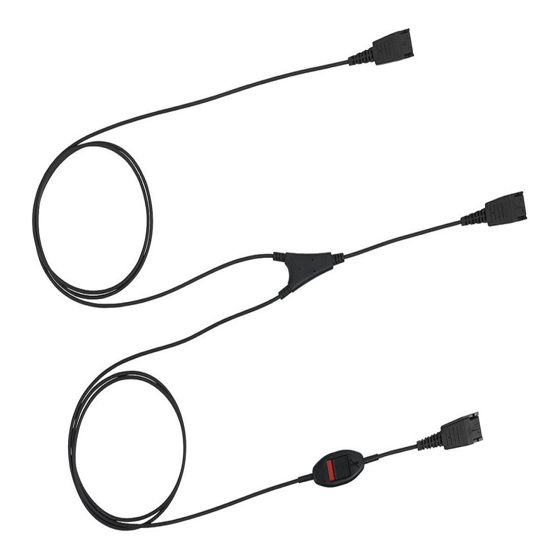 Ce cordon permet à deux micro-casques Jabra Quick Disconnect de se connecter à un cordon inférieur à des fins de supervision. Une partie de ce cordon permet soit de désactiver le microphone soit de participer à la conversation à l’aide de l’interrupteur.